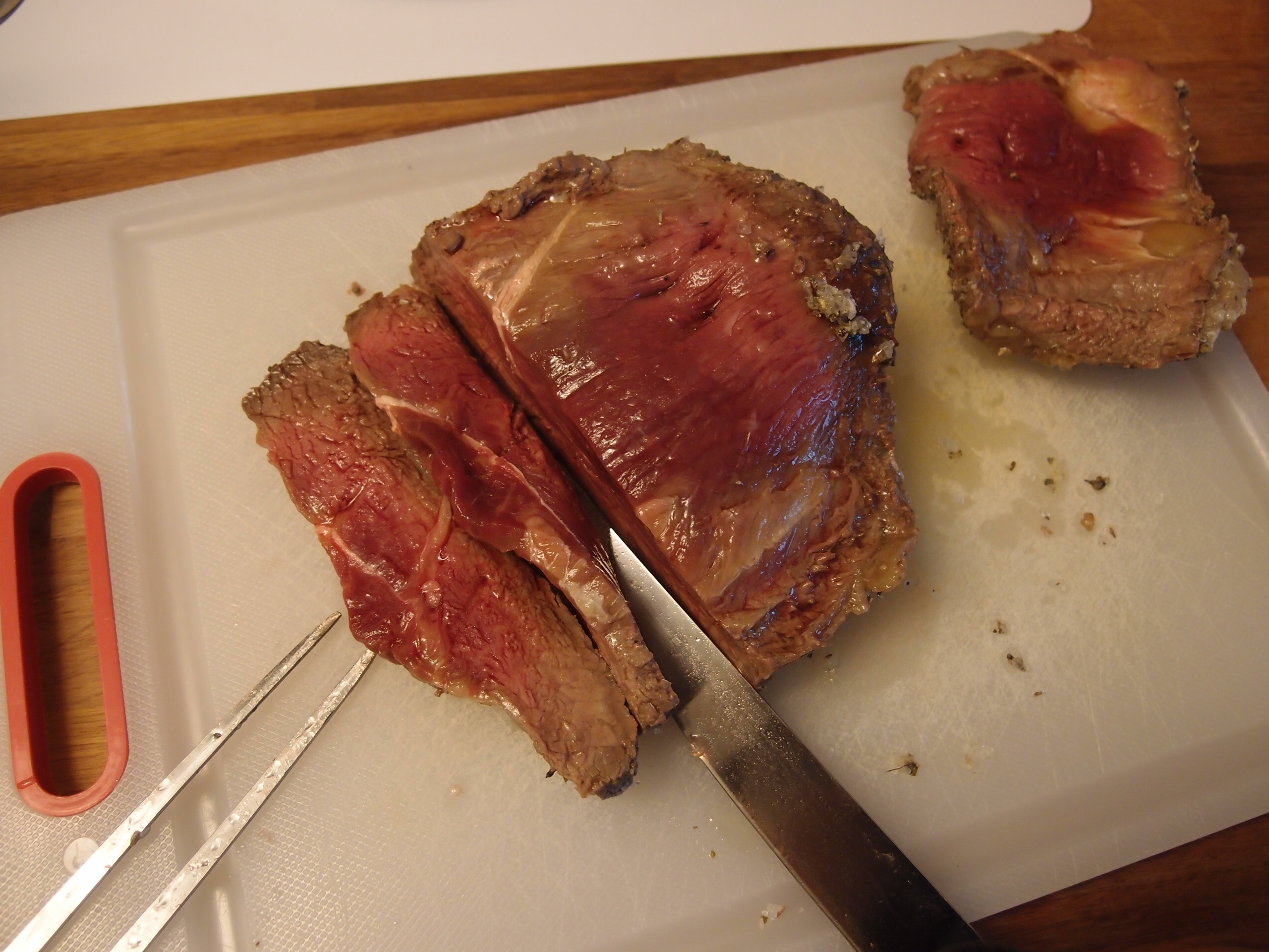 After roughly 50-55 min your roast beef should be ready, a good sign is that the salt cover starts to take a golden color.