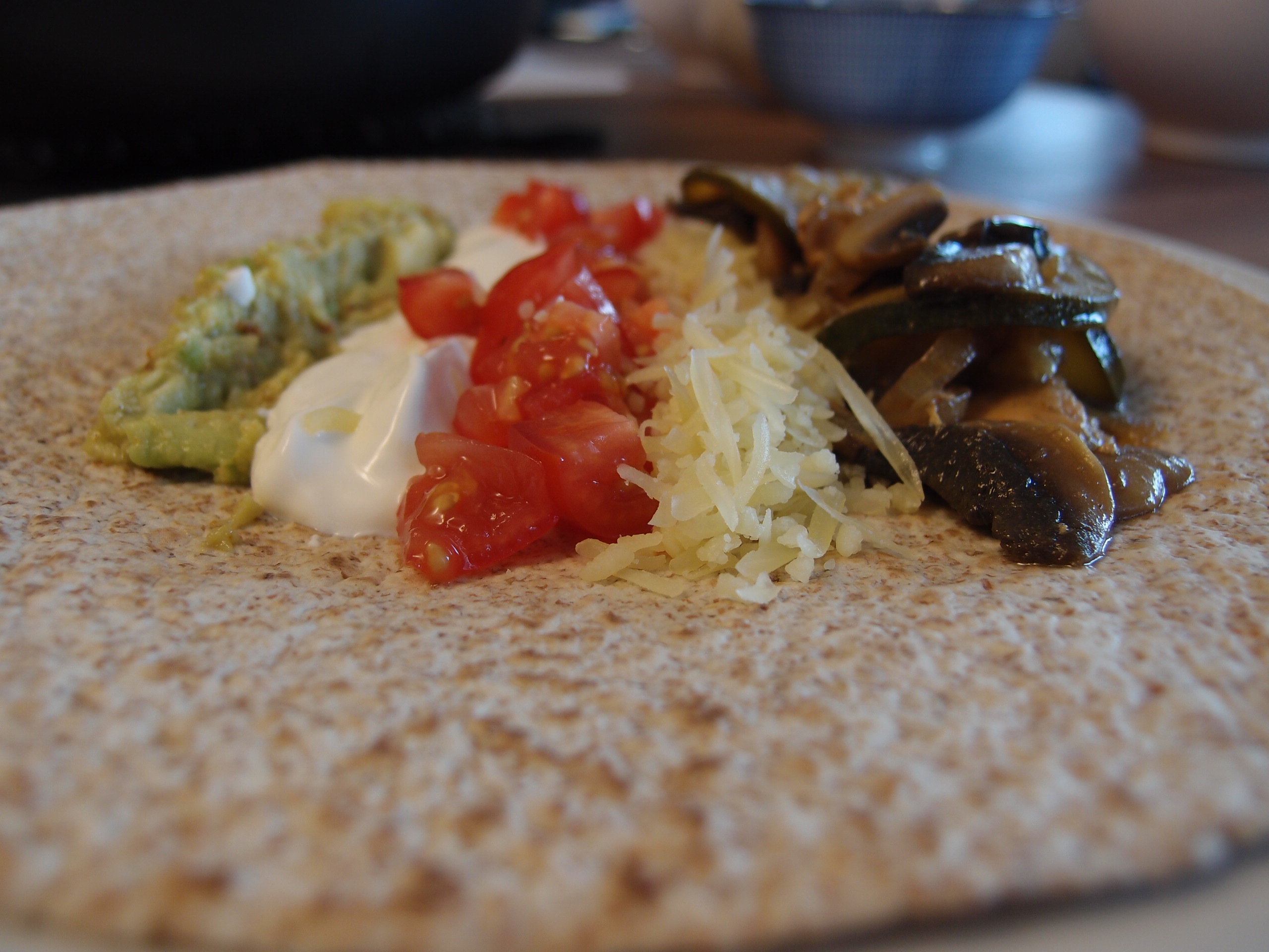 Add the mushrooms and after a few minutes the zucchini. I added a mexican spices mix and let cook for 10 minutes.