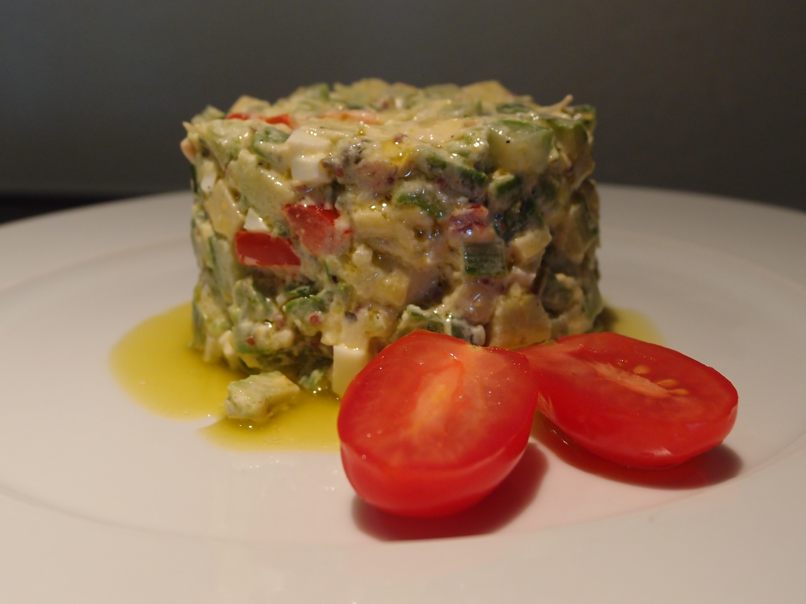 In the meantime cut the avocado, the tomatoes, the egg in small cubes. Put everything in a bowl and add the capers and the juice of the lemon to make sure that the avocado doesn’t get dark.