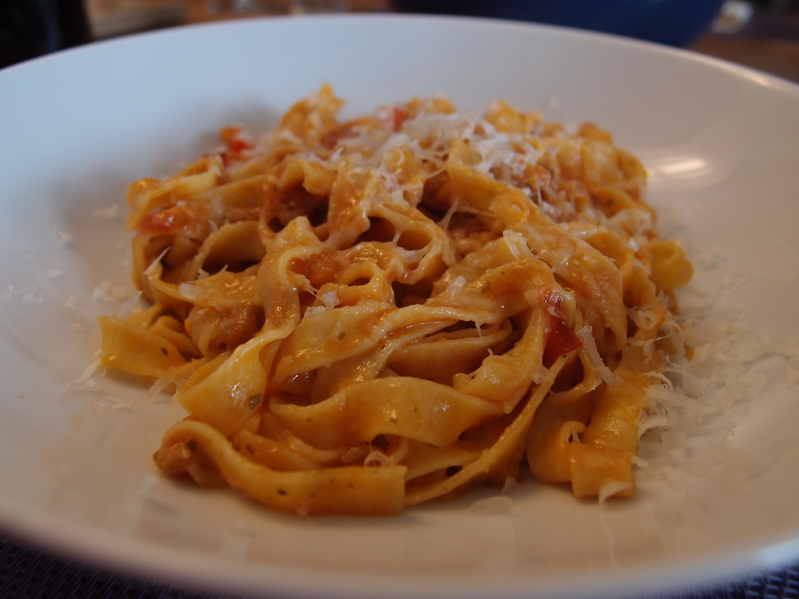 In the meanwhile boil some water, add some salt and put the tagliolini for a couple of minutes in the water. Drain them, add the sauce and ready to serve with some parmiggiano. Enjoy!