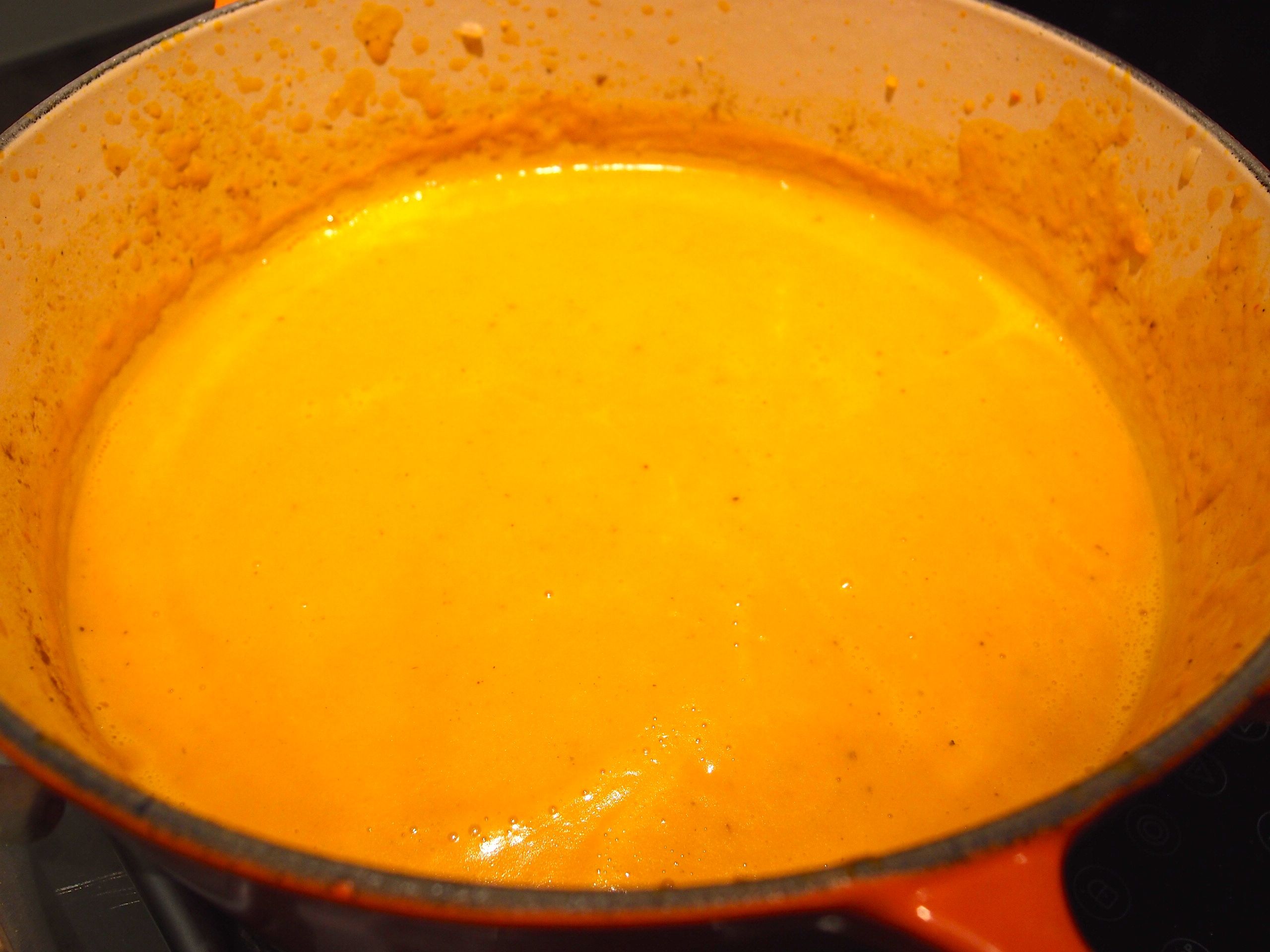 Add the cream bring it boiling temperature and then use a hand blender till creamy,