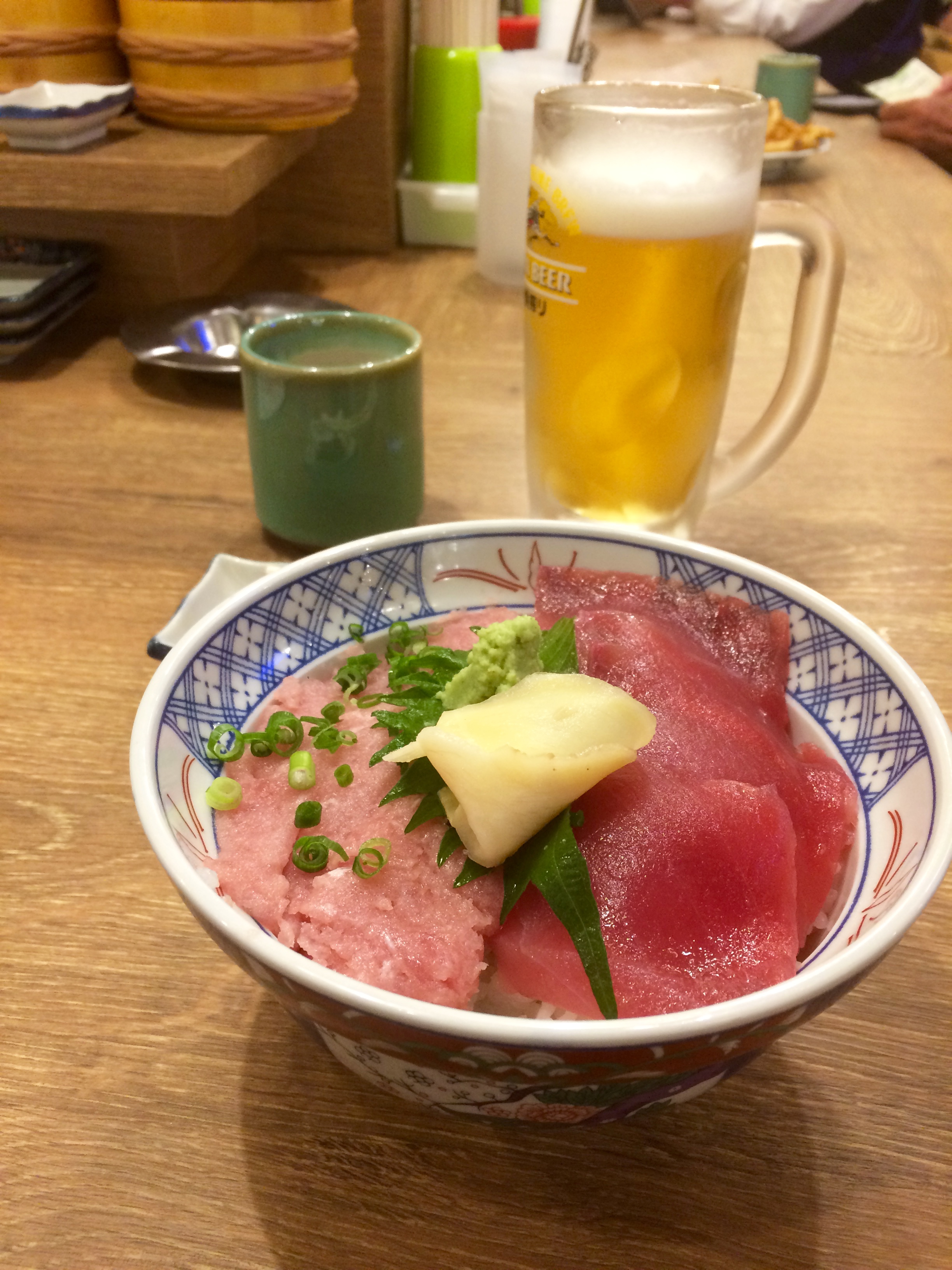 I tried a Negi Toro Donburi for 500 Jpy and a beer, really enjoyed it!